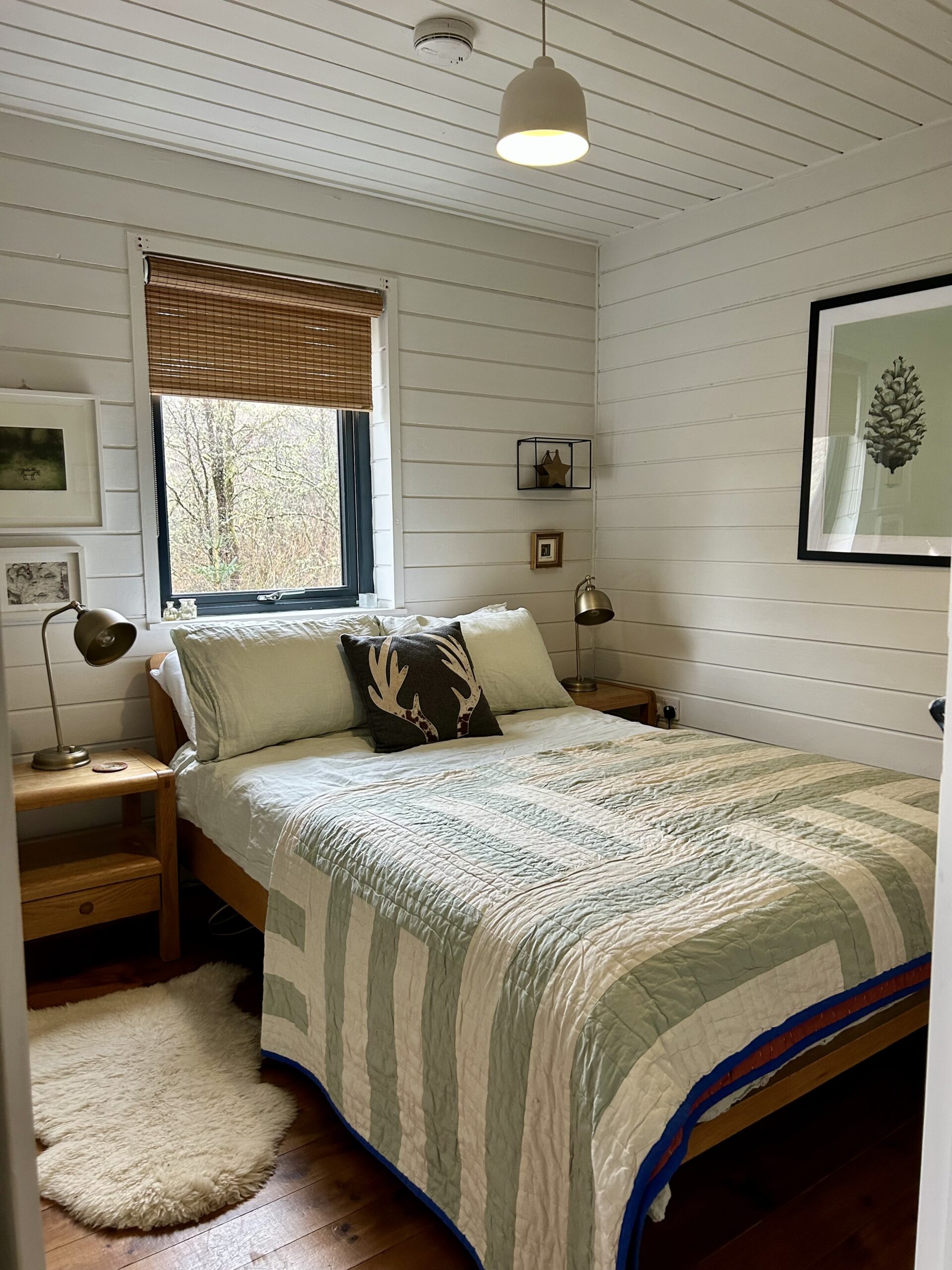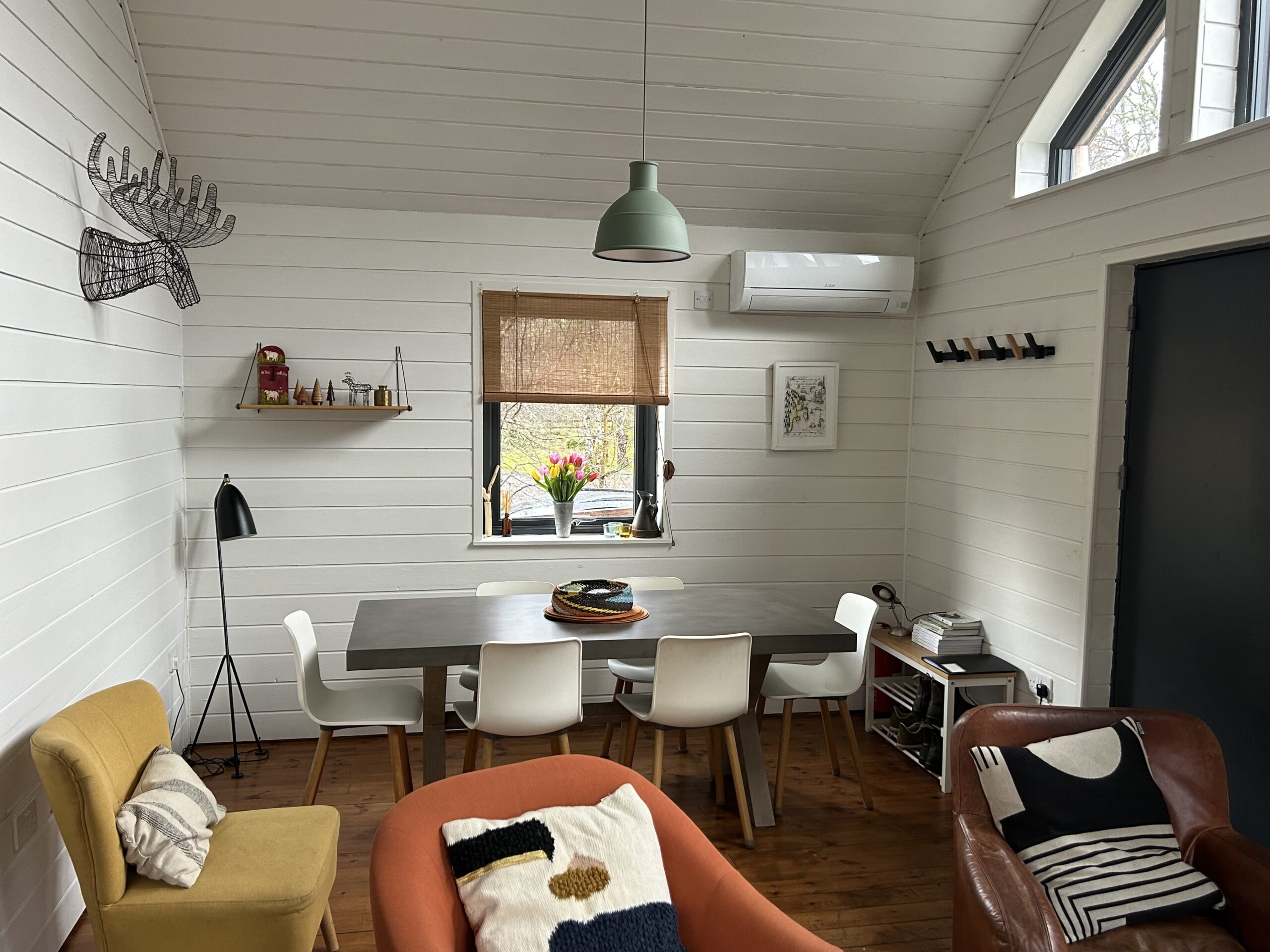 The cabin is finished throughout with Scandinavian style painted timber lining, double glazed, highly insulated, well heated and Kitchen livingsuitable for year round use. It provides a balance of luxury and comfort while maintaining the character, charm and feel of a true log cabin in a peaceful woodland location.