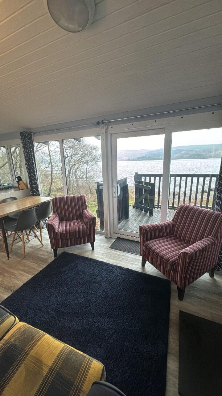 The lounge area offers comfortable seating, a dining table, a smart TV (Freeview channels) , Xbox, DVD player and has access to raised veranda overlooking the loch.